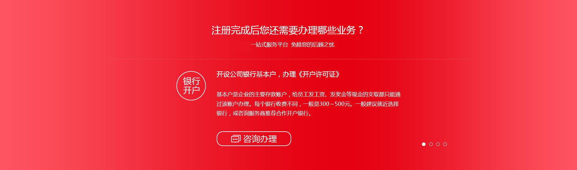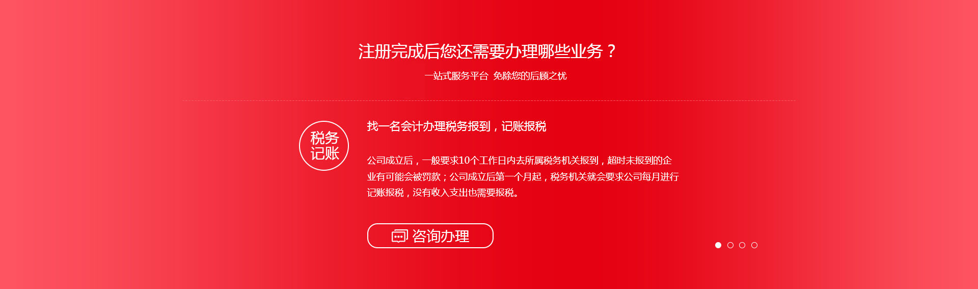 業(yè)務涉及:代辦各種營業(yè)執(zhí)照(商貿(mào)型、服務型、科技型、實業(yè)型企業(yè)等)及會計記賬(建賬建制、稅收籌劃、納稅申報、整理舊帳、所得稅匯算等)等咨詢;我公司以誠信為本,期待與您真誠合作!